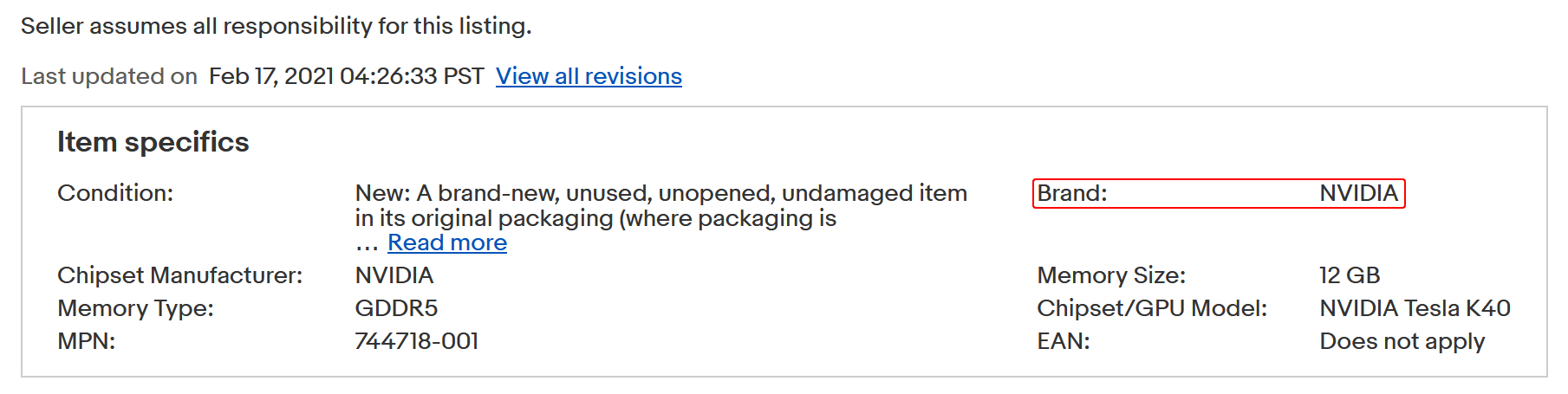 Next, we get the BRAND value. Typically, the brand name is in "Item specifics"